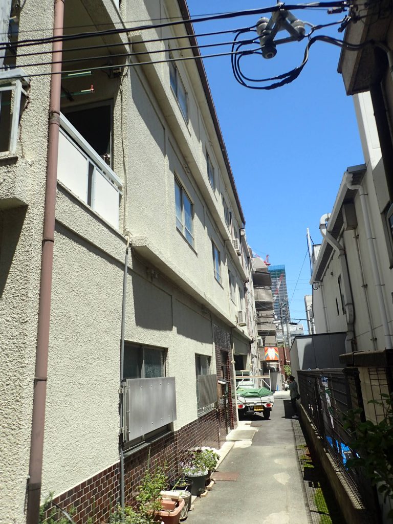屋根へ上がると、直ぐ裏のマンションのベランダが迫っており、
