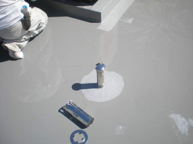緩衝シートをはったあと ウレタン防水を流し塗っていきます