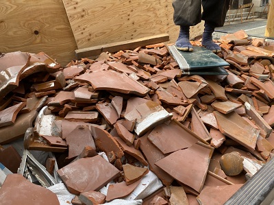 今回は、徹底的にということで、この部分の瓦も取り外します
