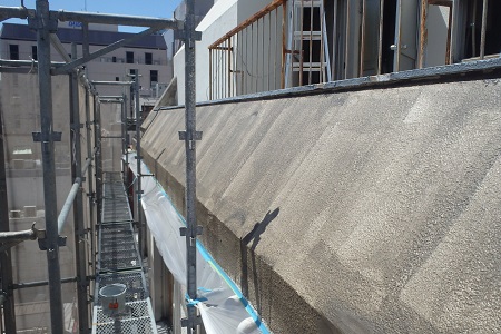 直ぐ上は、前回予算の都合で施工しなかった建物塔屋。