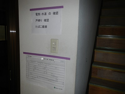 まずは資材の搬入・搬出経路となる階段の養生から。