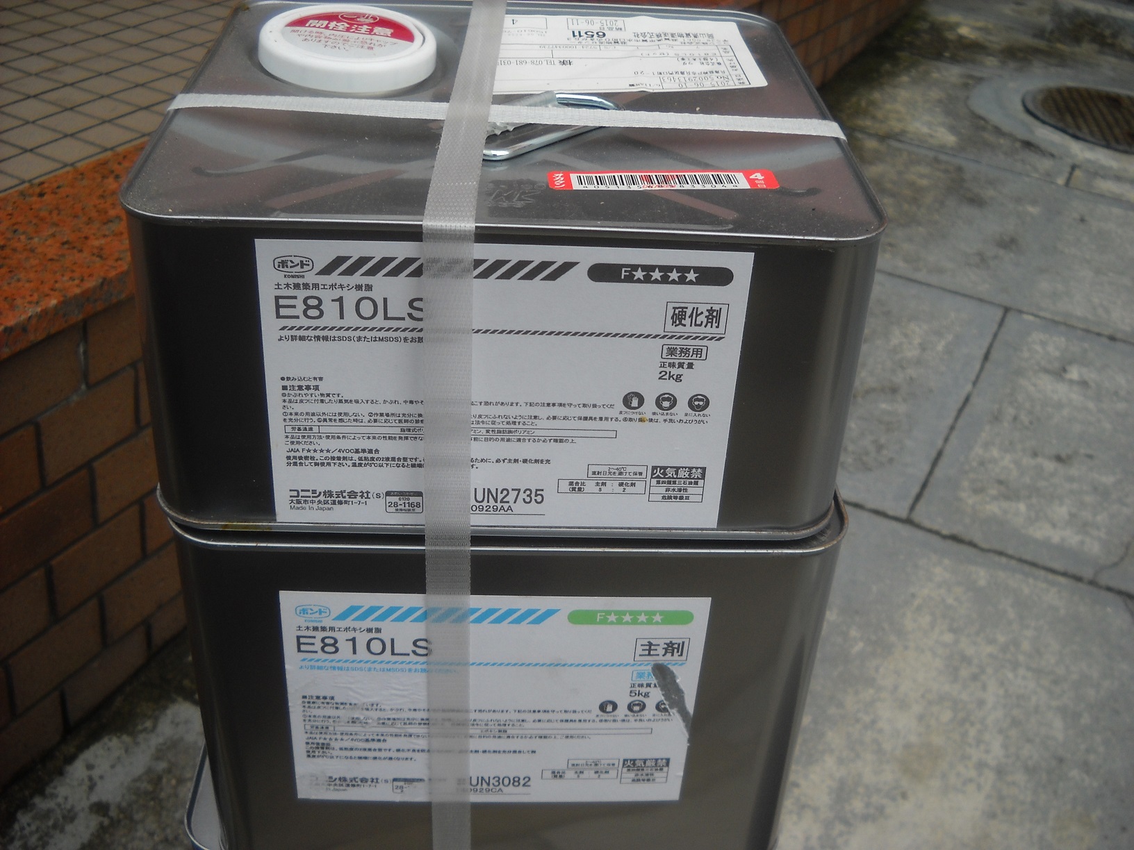 今回はエポキシ樹脂系ライニング、専用の材料を使用。