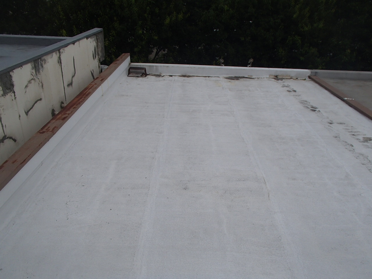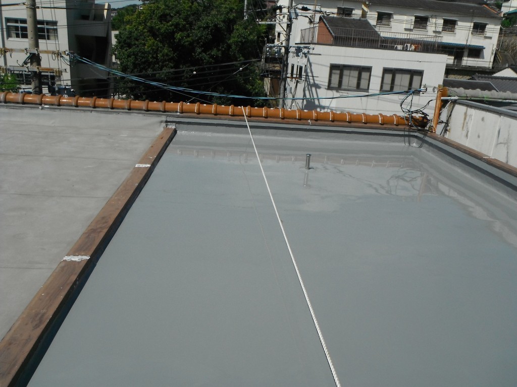 現状は、新築時のアスファルト露出防水シートの上に塗膜防水を施工しておりました。