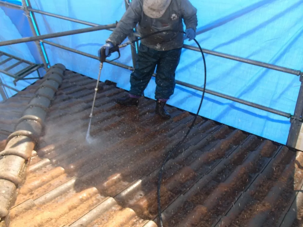 周囲に飛び散るため、ブルーシートを重ね対処しました。
