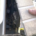 足場解体後の掃除の時間は、ちょうど近隣の犬さんたちのお散歩タイム。