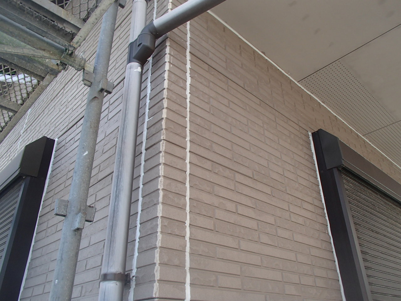 外壁の付帯部分の塗装を行い