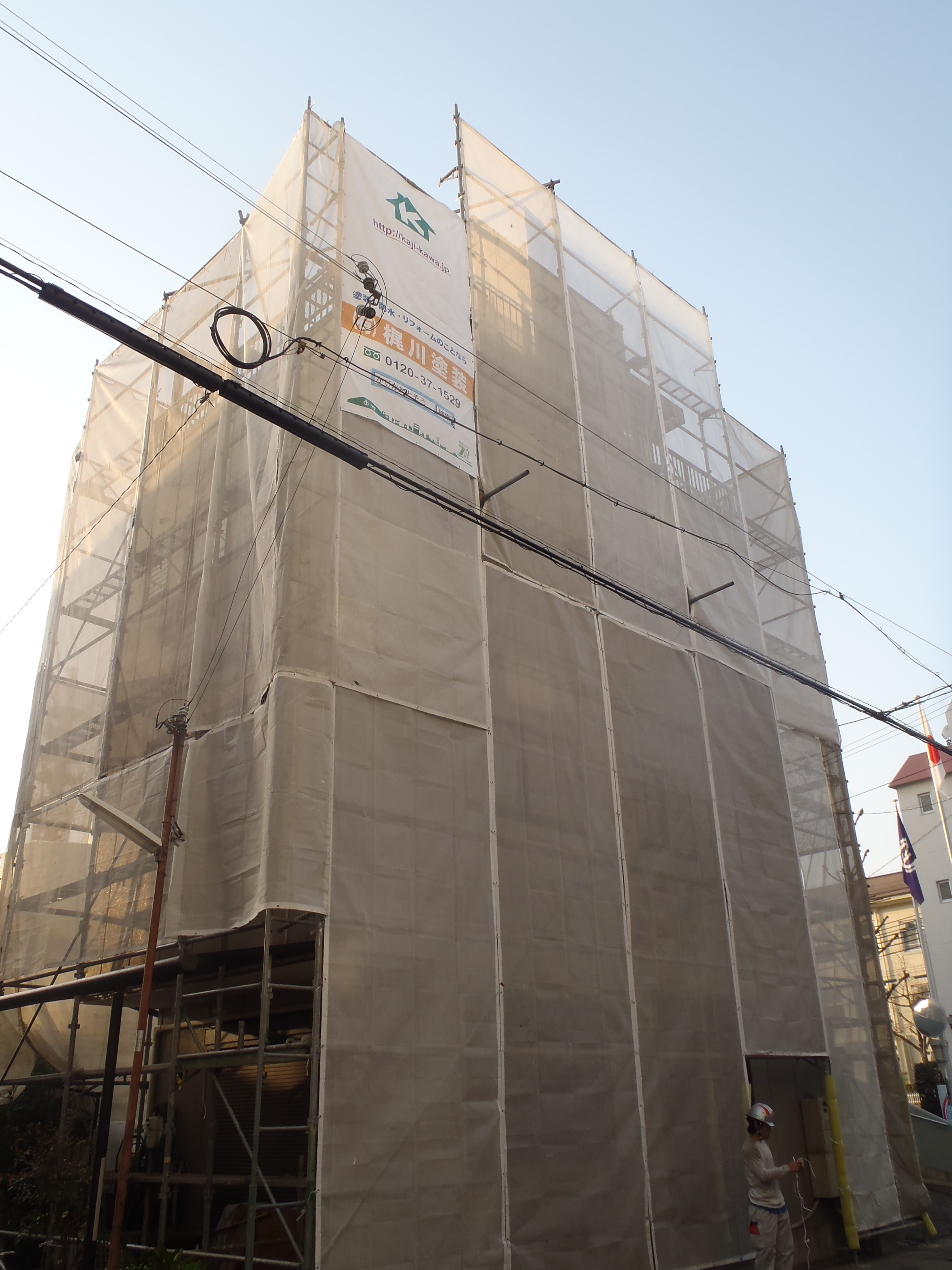 白っぽい部分が洗浄前、色の濃い部分が洗浄後。