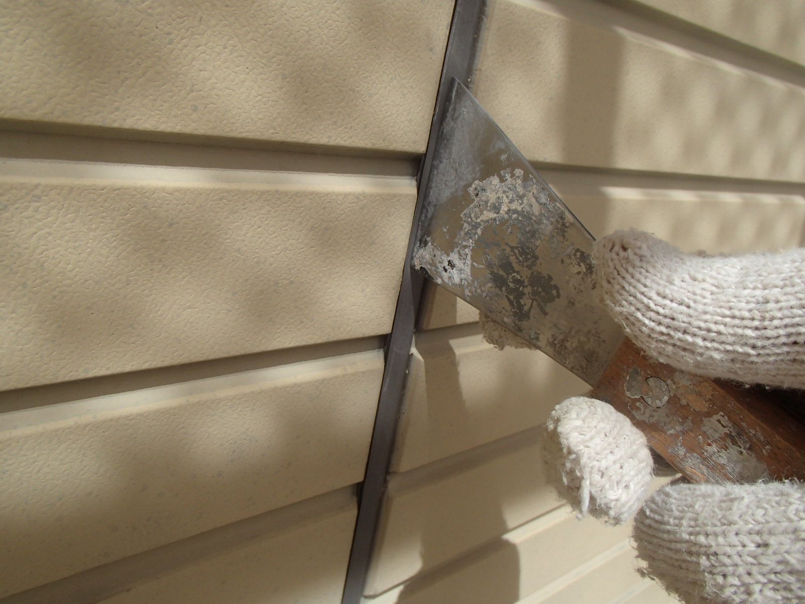 サイディングの目地シーリングの上からパッキンが被せてあり、