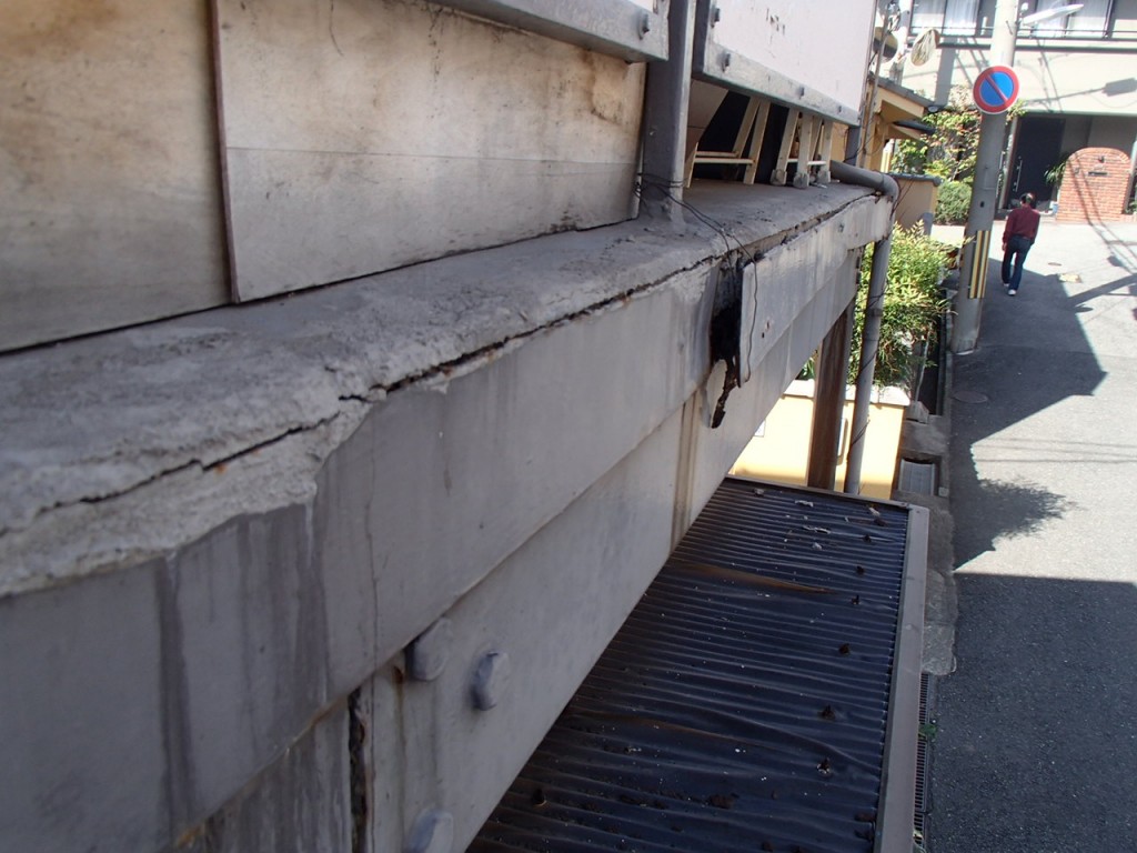 剥がれかかった鉄板を取り除きセメントボンドで下調整