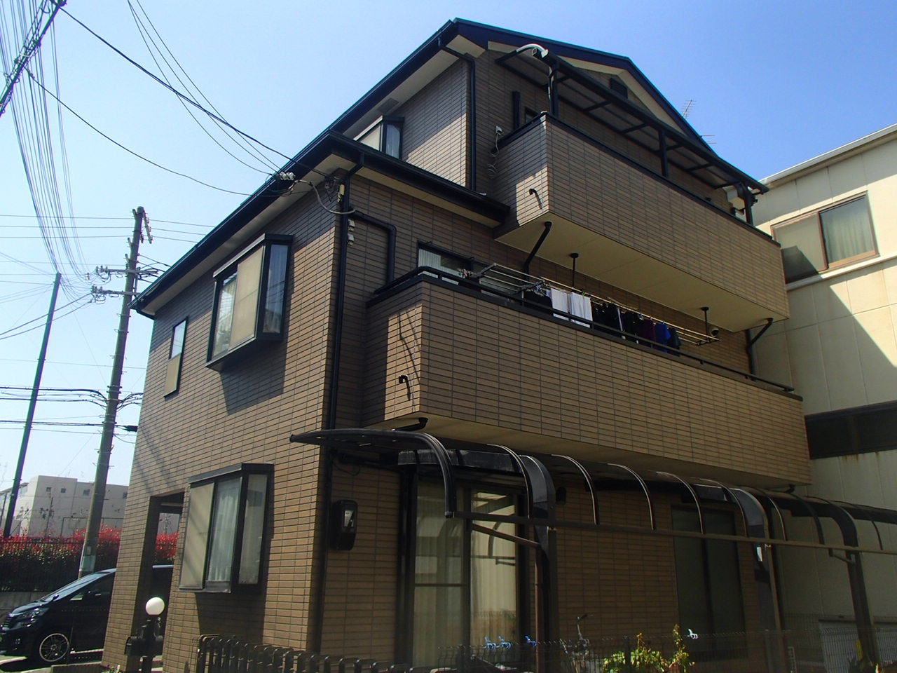 外壁色は1階が濃いグレー、2階が薄いグレー
