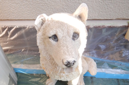 お客様の玄関先に置かれているイヌの置物。