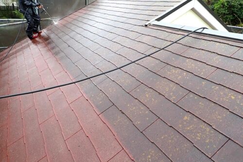 洗浄前に樋の中の落ち葉や泥を清掃。